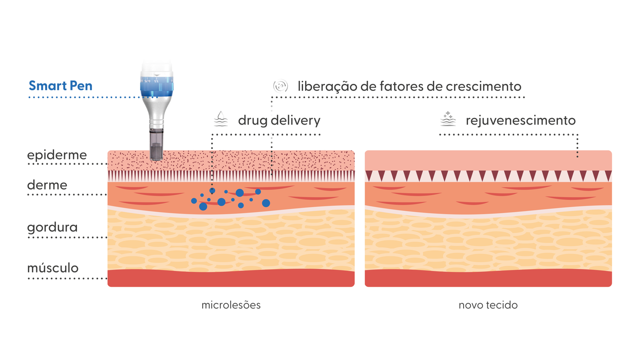 A Smart Pen é um dispositivo de microagulhamento elétrico, desenvolvido para promover bioestimulação, regeneração tecidual e máxima permeação de ativos.